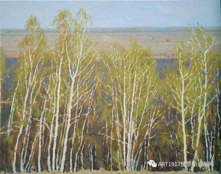 《奥卡河旁的白桦林》 杜兰金·德米特里40×50cm 2017年 布面丙烯