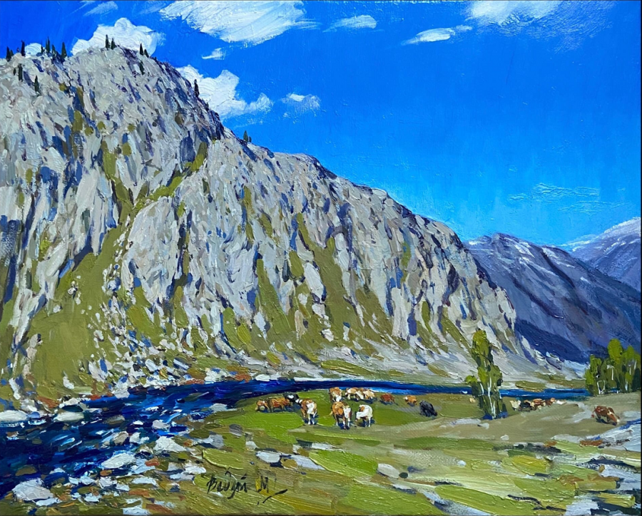 山河湖海就这样汇集在油画作品之中